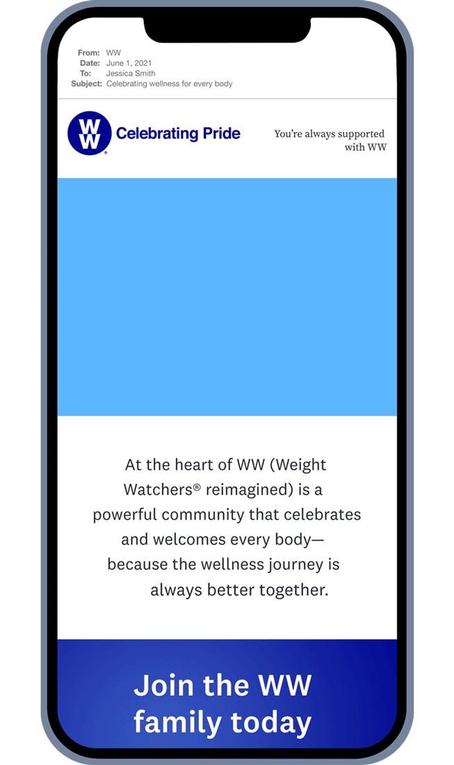 Concepted and developed cross-platform campaign for Pride Month, which reached 4.7M WeightWatchers subscribers, 7.2M social media followers, and WW’s countless B2B clients.