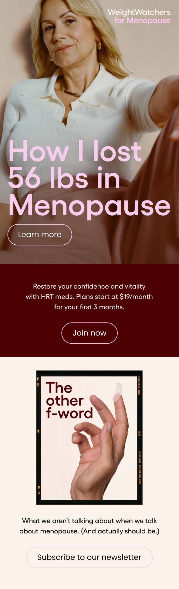 In 2025, WeightWatchers launched the first comprehensive menopause program of its kind. Combining access to clinicians, fitness, community, and treatments like HRT all in one place, WeightWatchers for Menopause replaces stigma with with science, support and strength.